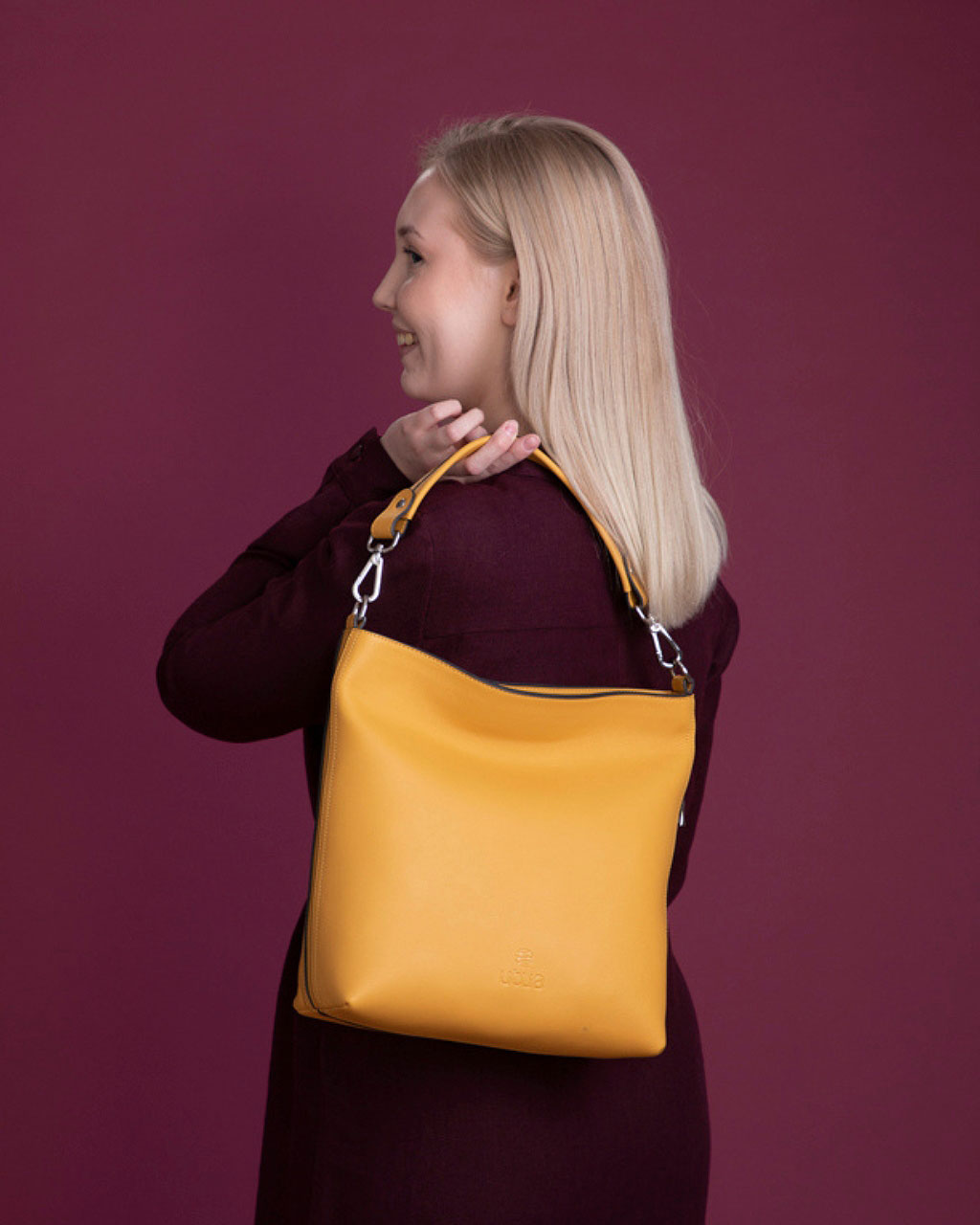 Keltainen laukku huomataan. Se loistaa kesäpäivänä kilpaa auringon kanssa ja piristää syksyn harmaita päiviä. Sanotaan, että laukku on naisen tärkein asuste - värillisillä laukuilla asujen ilmeen muuttaminen onnistuu helposti ja keltainen laukku toimii hyvin asukokonaisuuden katseenvangitsijana. Laukuista trendikäs shopperi kätkee sisälleen suurenkin tavaramäärän, kun taas pieni olkalaukku on näppärä silloin, kun tarvitset mukaasi vain puhelimen, avaimet, huulipunan ja maksukortit. Keltainen laukku on persoonallinen - sellaista ei ole jokaisella vastaantulijalla. Tutustu Utuan laadukkaaseen valikoimaan ja tilaa itsellesi kaunis keltainen laukku.