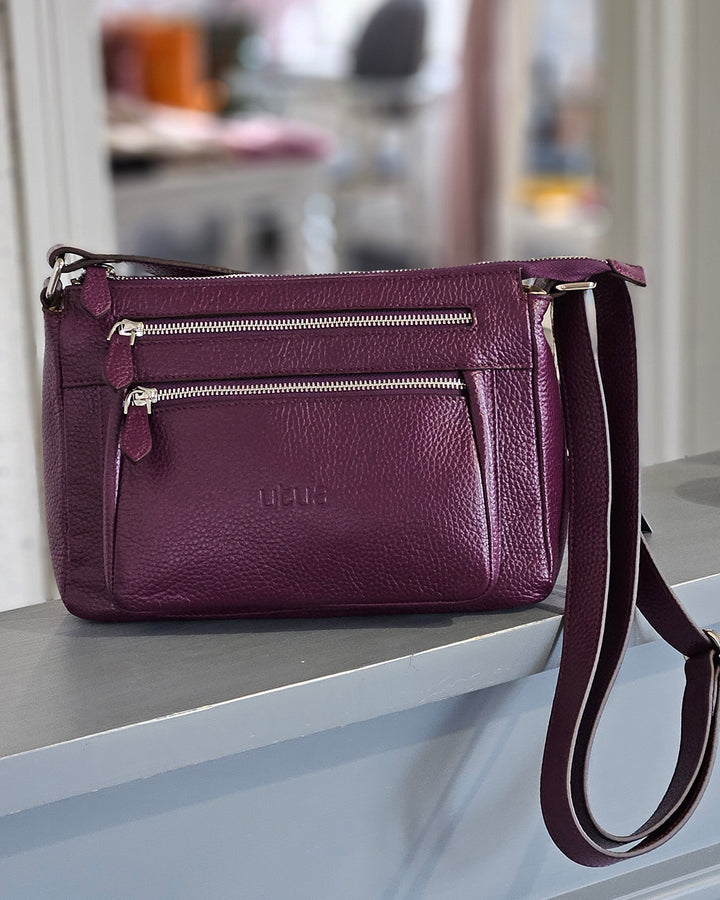 Haluatko, että laukussasi on taskuja ulkopuolella? Tässä mallissa niitä löytyy! Hestia on käytännöllinen pikkulaukku, josta löytyy kaksi helposti käytettävää ja vetoketjulla suljettavaa taskua laukun etupuolelta ja yksi laukun takaa. Ja näiden lisäksi vielä laukun sisältä! Eli avaimille, puhelimelle, lompakolle ja monelle muulle pikkutavaralle löytyy varmasti kullekin oma säilytyspaikkansa! Laukkuun mahtuu myös puolen litran vesipullo tai kokoontaittuva sateenvarjo. Tämä tumma violetti olkalaukku on siis varsin monipuolinen!