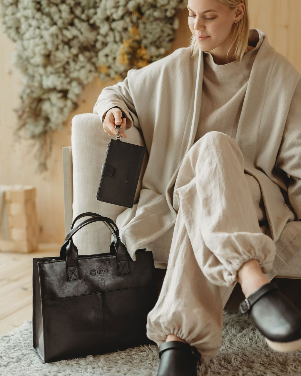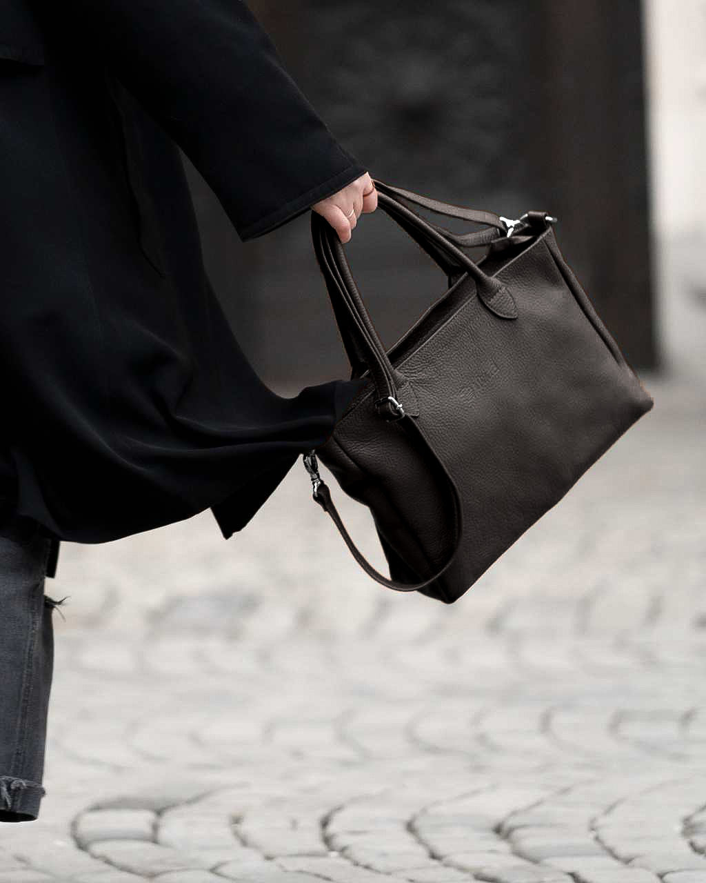 Suunnittelemme ajattomia klassikoita, hitaan kuluttamisen vaihtoehtoja. Laadukas ja pitkäikäinen nahka materiaalina sekä ammattitaitoinen käsityöosaaminen ompeluvaiheessa takaavat sen, että laukku kestää käytössä pitkään. Lisäksi ajaton muotoilu tekee laukusta pitkäikäisen ja aikaa kestävän. Tavoitteenamme on suunnitella tuotteita, joiden vuosia kestävä käyttöikä pienentää tuotteen hiilijalanjälkeä.