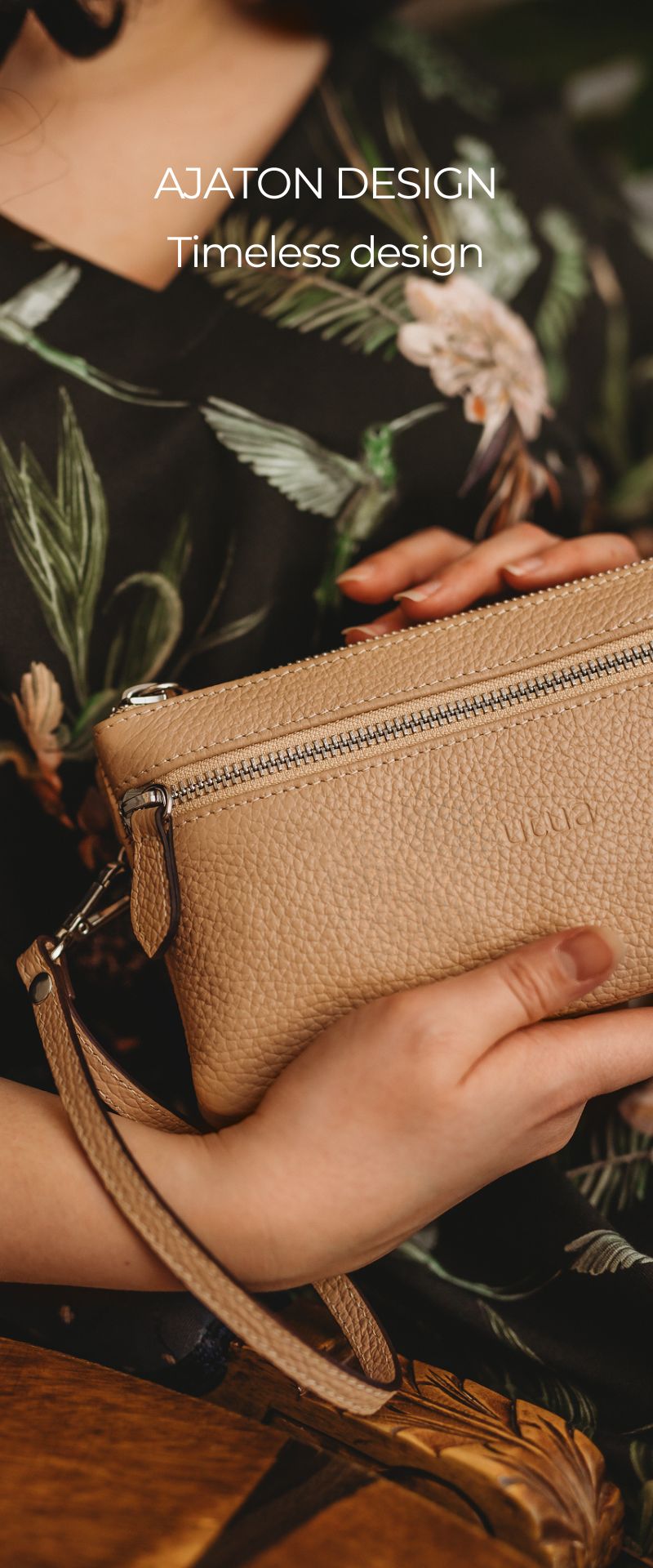 - Pelkistetty muotokieli: Linjakkaat muodot ja harmoniset mittasuhteet tekevät laukuistamme todellisia katseenvangitsijoita ilman liiallisia yksityiskohtia.