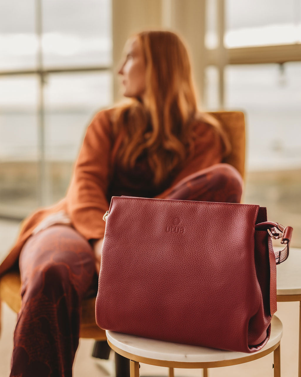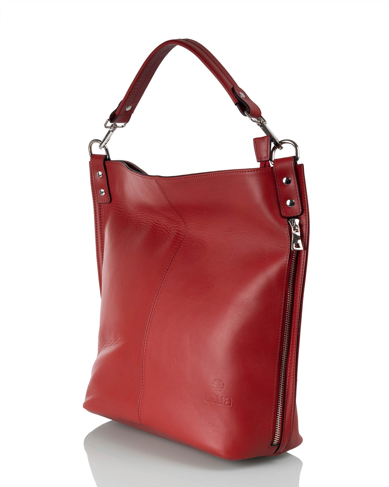 Utua Zeus Exclusive -punainen olkalaukku on näyttävä ja monipuolinen lähettilaukku, joka sopii täydellisesti sekä työhön että vapaa-aikaan. Se on valmistettu ympäristöystävällisestä, kasviparkitusta italialaisesta nahasta, ja sen rikas punainen sävy ja käsinvärjätty viimeistely takaavat ainutlaatuisen patinan, joka syvenee käytön myötä. Zeus-laukkuun mahtuu MacBook Air, tabletti, puhelin ja lompakko, ja siinä on useita taskuja, kuten pehmustettu tablettilokero, kaksi vetoketjullista taskua ja kynätasku. Säädettävä hihna ja kestävä tekstiilivuori parantavat sen toiminnallisuutta.