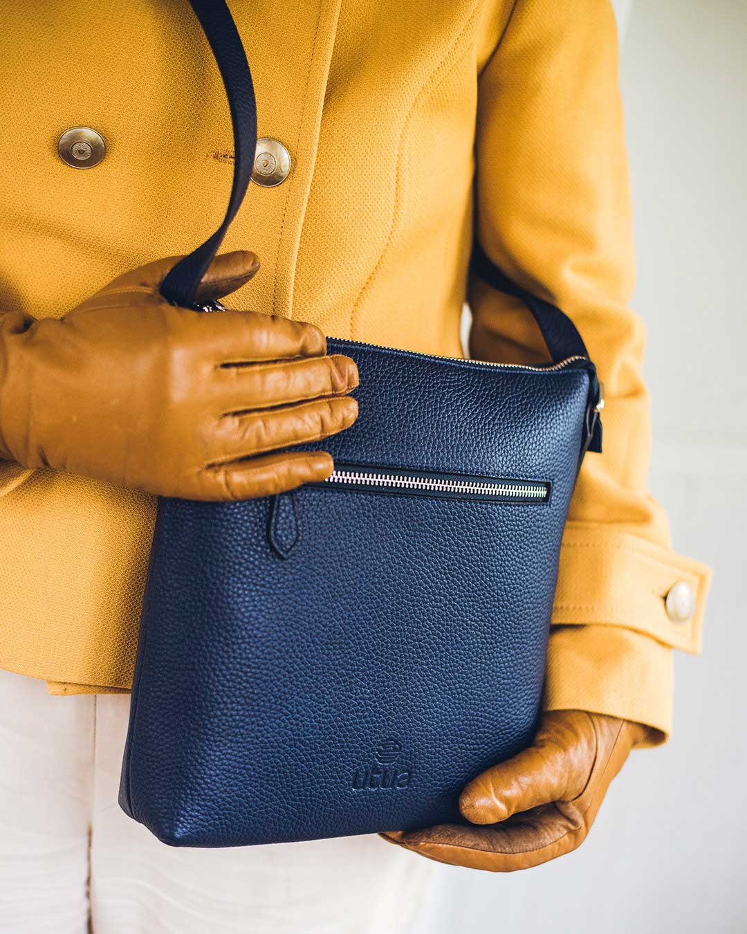 Utuan malliston sininen nahkalaukku on monipuolinen asuste, joka elävöittää minkä tahansa asun ajattomalla eleganssillaan ja eloisalla viehätysvoimallaan. Utuan siniset nahkalaukut, pastellisävyistä syvän