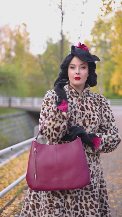 Afrodite leather handbag, dahlia red