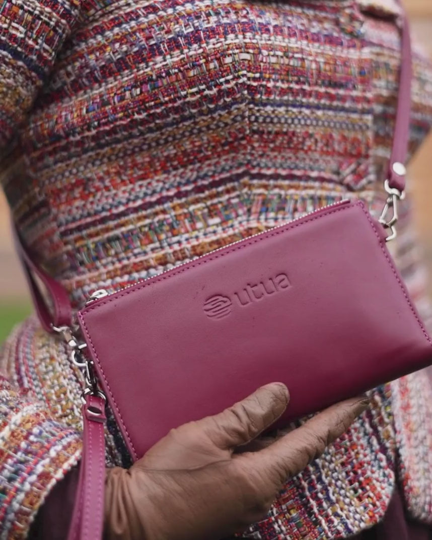 Tyylikäs puhelinlompakko toimii sekä lompakkona että pienenä clutchina. Puhelimelle on oma tasku, lisäksi löytyy runsaasti korttipaikkoja ja vetoketjutaskuja. Irrotettava rannelenkki viimeistelee kokonaisuuden ja lisäostettavalla olkahihnalla muunnat sen pikkulaukuksi.